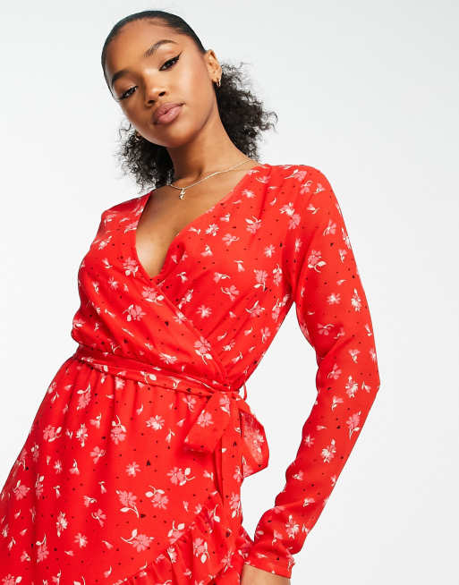 Product Name: Red print wrap dress online