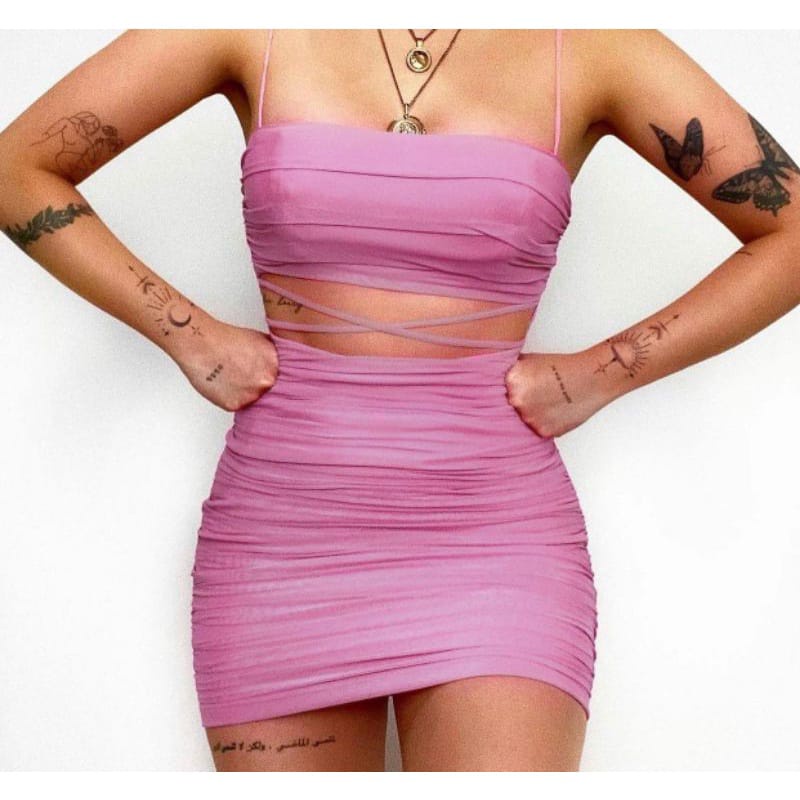 Product Name: Mauve ribbed strappy cut out detail bodycon dress online