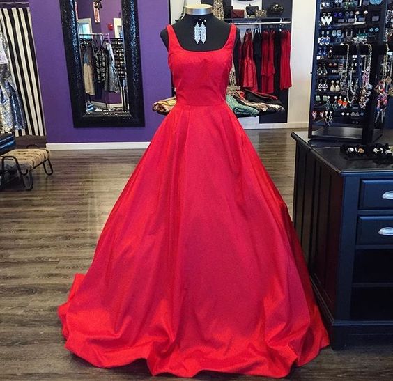 Product Name: Red square neck prom dress online