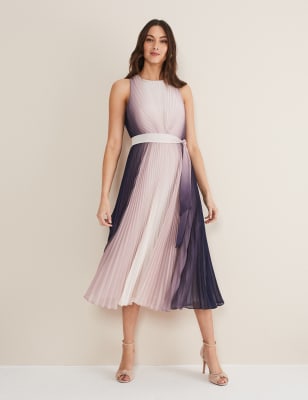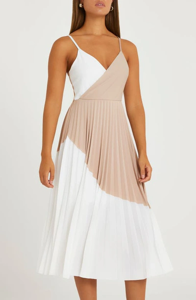 Product Name: Beige colour block pleated midi dress online