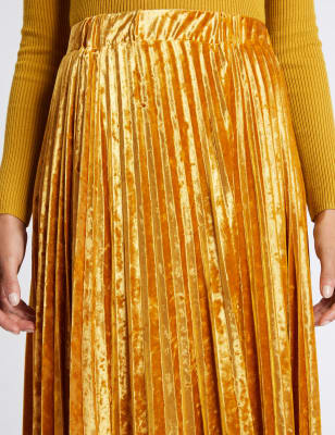 Product Name: Yellow velvet pleated skirt online
