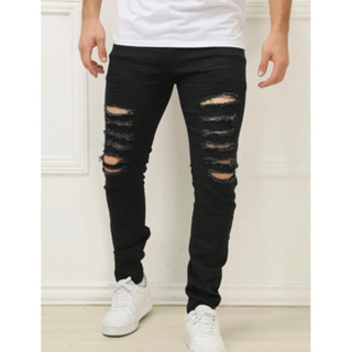 Product Name: Calça masculina preta rasgada no joelho online