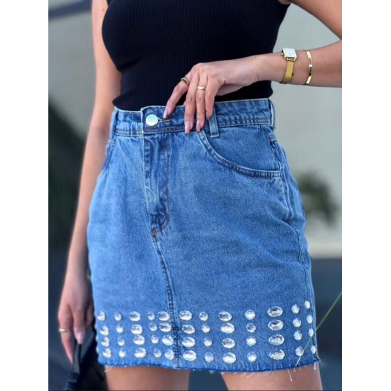 Product Name: Saia jeans feminina curta online