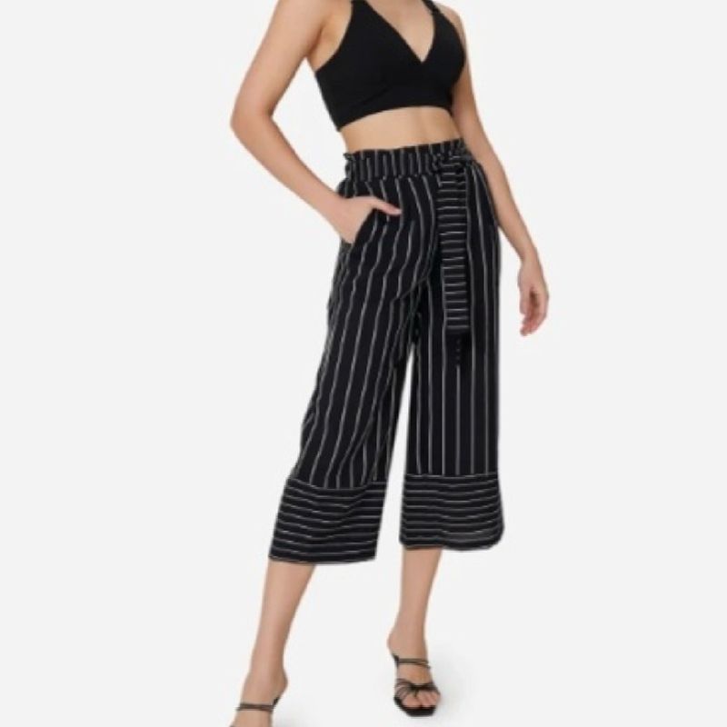 Product Name: Calça pantacourt preta com listra branca online