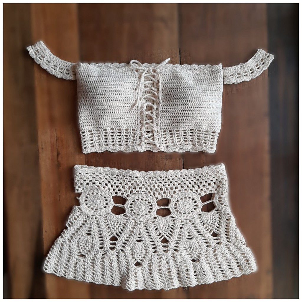 Product Name: Conjunto de cropped e saia de croche online