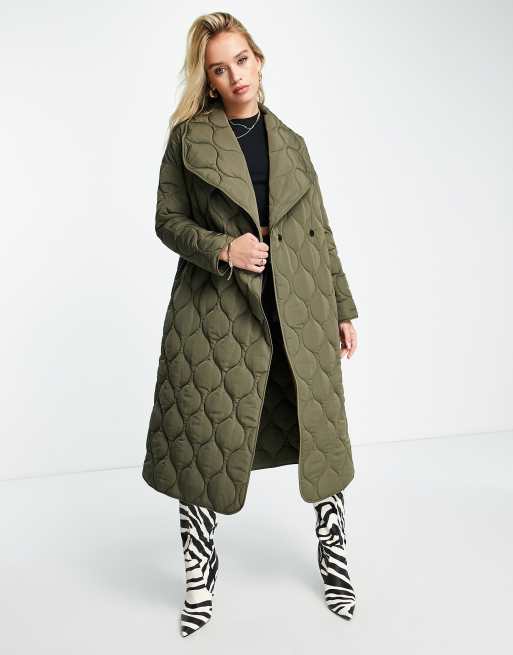 Product Name: Khaki long quilted coat online