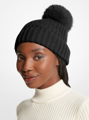 Product Name: Black beanie hat with fur pom pom online